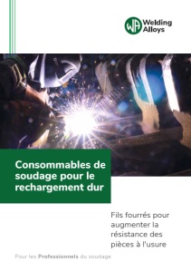 welding-alloys.com 11 Aciers faiblement et moyennement alliés Les dépôts métalliques bainitiques et/ ou martensitiques sont particulièrement adaptés aux applications combinant abrasion et impact modérés. Ces consommables sont faciles à appliquer et il n'y a pas de restriction sur l'épaisseur du dépôt ; ils présentent également une bonne usinabilité (en fonction de la dureté finale). L'ajout d'éléments d'alliage specifiques, tels que le molybdène, le tungstène ou le vanadium, augmentera la performance du dépôt soudé, ce qui permet d'améliorer la résistance à la température et à l'usure métal sur métal. Les alliages d'acier à outils en sont un bon exemple (par exemple ROBODUR K 650-G, qui présente une analyse similaire à celle de l'acier à outils AISI H11). Produit Composition [%] - Base Fe Dureté brute de soudage en 3 couches C Mn Si Cr Mo V W HARDFACE B 0.1 1.5 0.4 1 260 HB HARDFACE T 0.15 1.5 1 1.5 360 HB HARDFACE P 0.2 2 1 3 400 HB HARDFACE L 0.5 1.7 2.2 8.5 55 - 60 HRC HARDFACE LP 0.5 1.9 1 7.5 55 - 60 HRC HARDFACE CHROMEFREE 0.5 1.2 0.9 2.8 3 50 - 56 HRC ROBODUR K 250 0.1 1.5 0.5 1.6 0.2 250 HB ROBODUR K 350 0.15 1.5 0.6 2 0.2 350 HB ROBODUR K 450 0.3 1.5 0.6 2.5 0.5 450 HB ROBODUR K 600 0.5 1.2 0.6 6 0.8 54 - 60 HRC ROBODUR K CERAMIC 0.35 0.6 2.5 9.5 55 - 60 HRC ROBODUR K 650 0.5 1.3 1.2 5.4 1.3 0.3 1.2 57 - 62 HRC Les fiches techniques pour ces produits sont disponibles sur notre site internet. Les fiches de données de sécurité sont également disponibles sur demande. Ces fils pincés et tubulaires peuvent être appliqués manuellement, à l'aide d'automates de soudage ou même de robots. Ils offrent une excellente soudabilité. En fonction de vos besoins et de l'application, Welding Alloys peut fournir le fil soit en bobines, soit en fûts pour des quantités plus importantes. Welding Alloys propose également une version non cuivrée de la gamme ROBODUR K. La gamme ROBODUR F conserve toutes les caractéristiques et les avantages de la version cuivrée, mais elle est fabriquée selon un procédé plus écologique (pas de bain de cuivrage electrolytique). Back to contents page